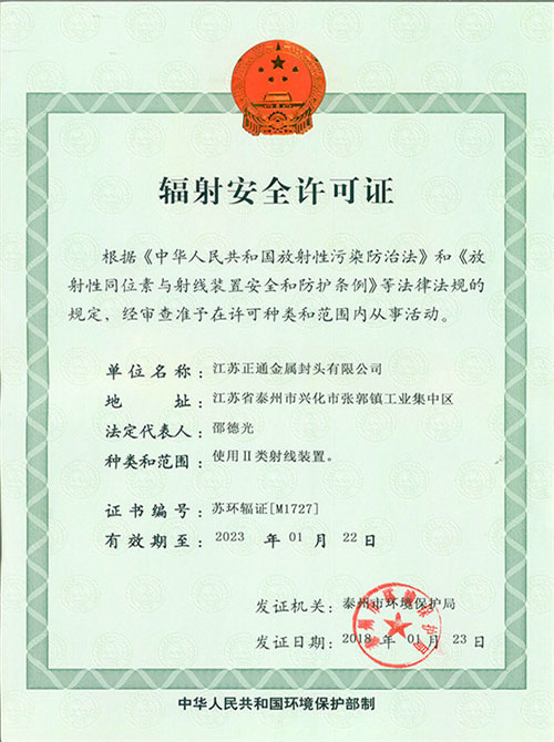 輻射安全許可證書